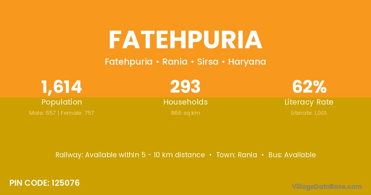 Rania is the nearest town to Fatehpuria village for major economic activities