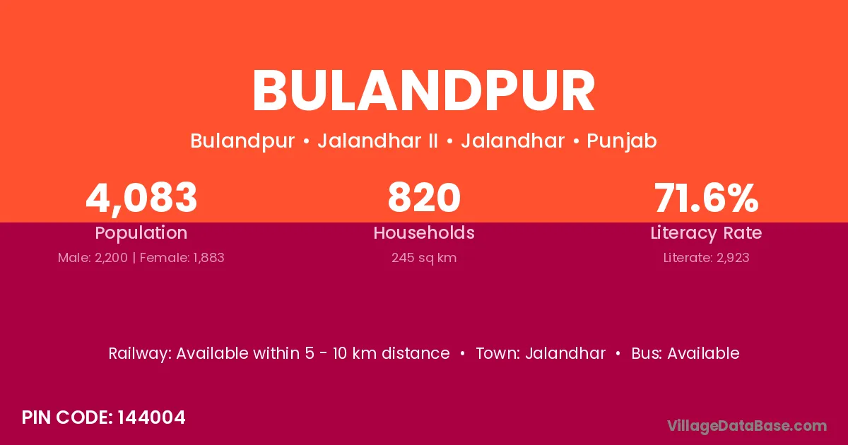 Bulandpur village has a total population of 1,839 people, of which 1,001 are males and 838 are females.