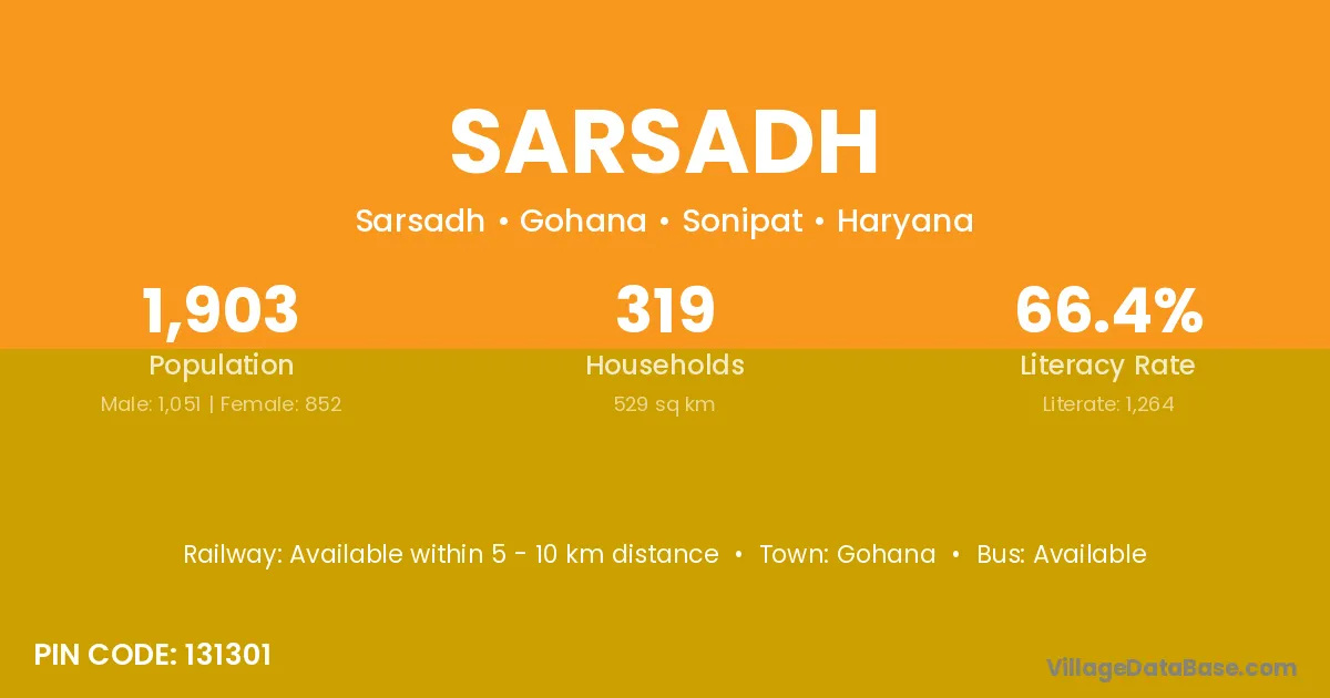 Gohana is the nearest town to Sarsadh village for major economic activities