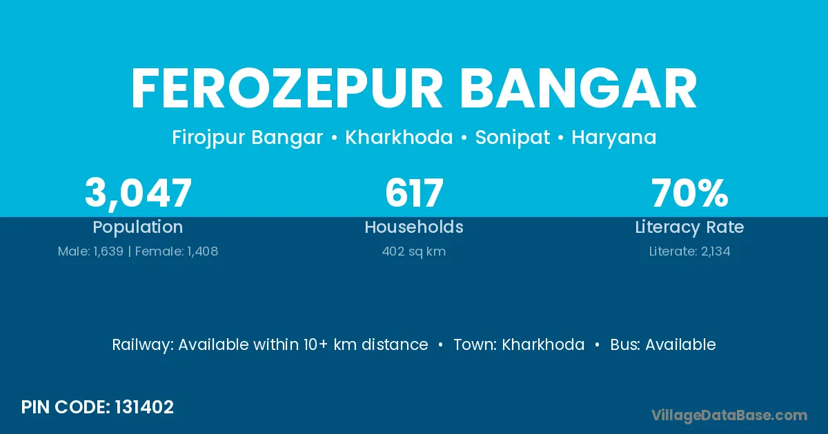 Ferozepur Bangar village has a total population of 3,047 people, of which 1,639 are males and 1,408 are females.