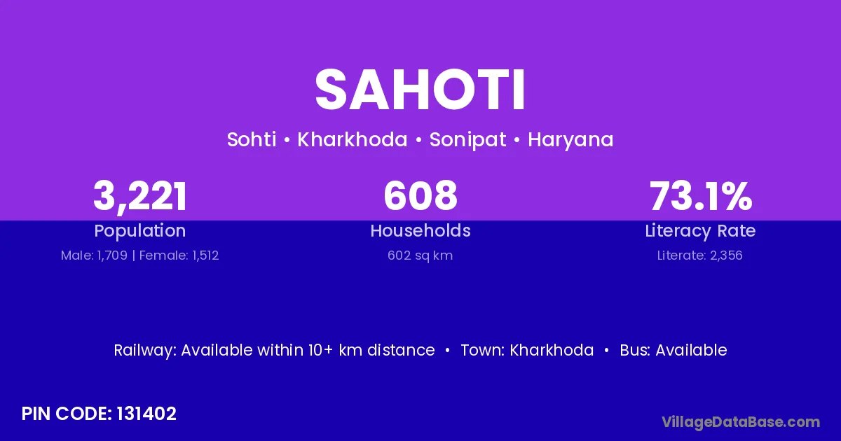 Kharkhoda is the nearest town to Sahoti village for major economic activities