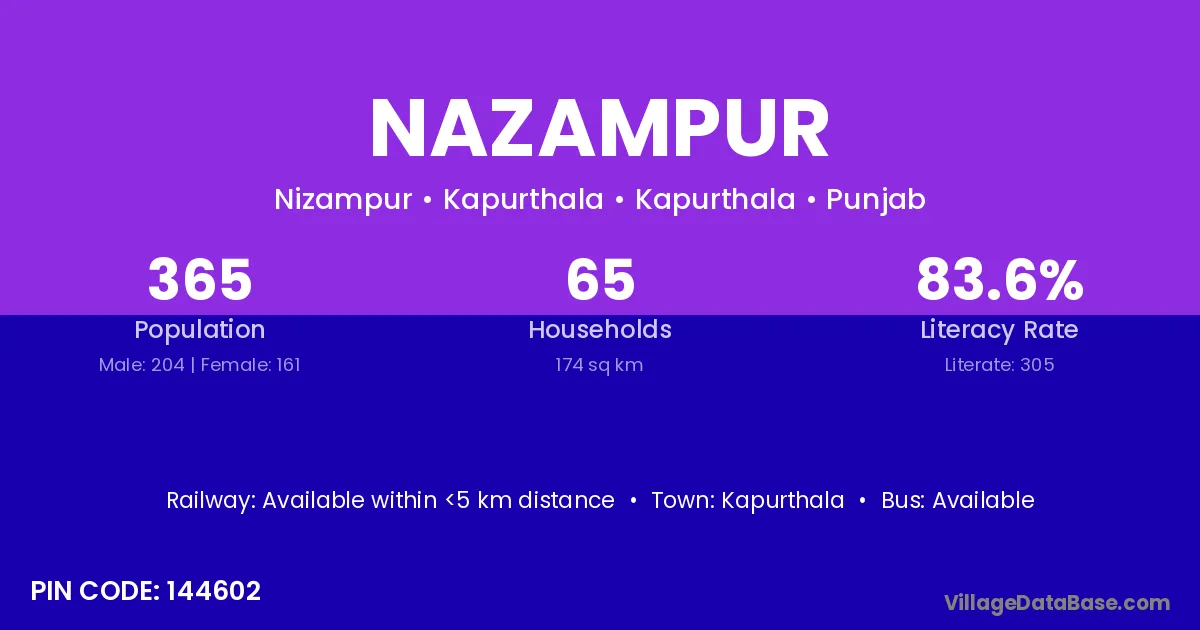 According to Census 2011 information, the village code of Nazampur village is 133204.