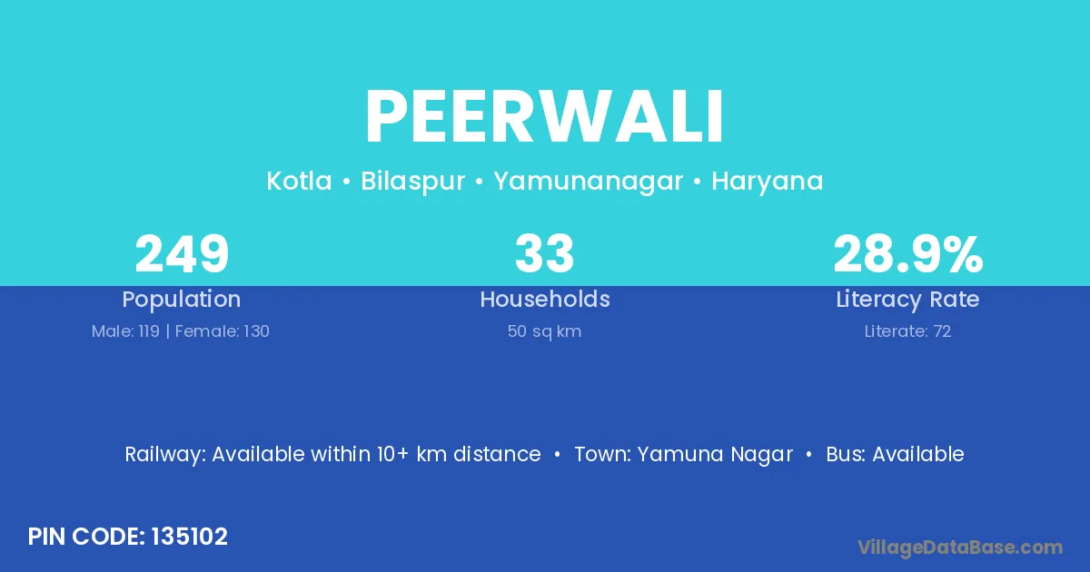 Yamuna Nagar is the nearest town to Peerwali village for major economic activities