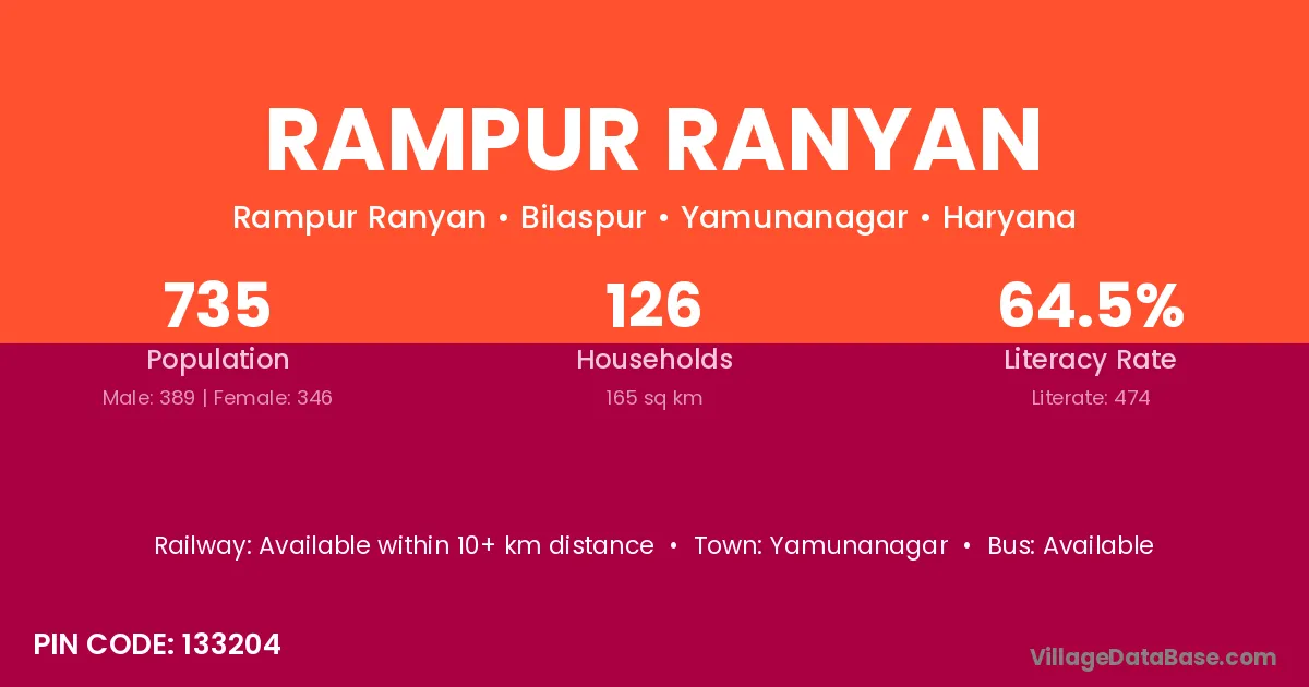 Rampur Ranyan village has a total population of 735 people, of which 389 are males and 346 are females.