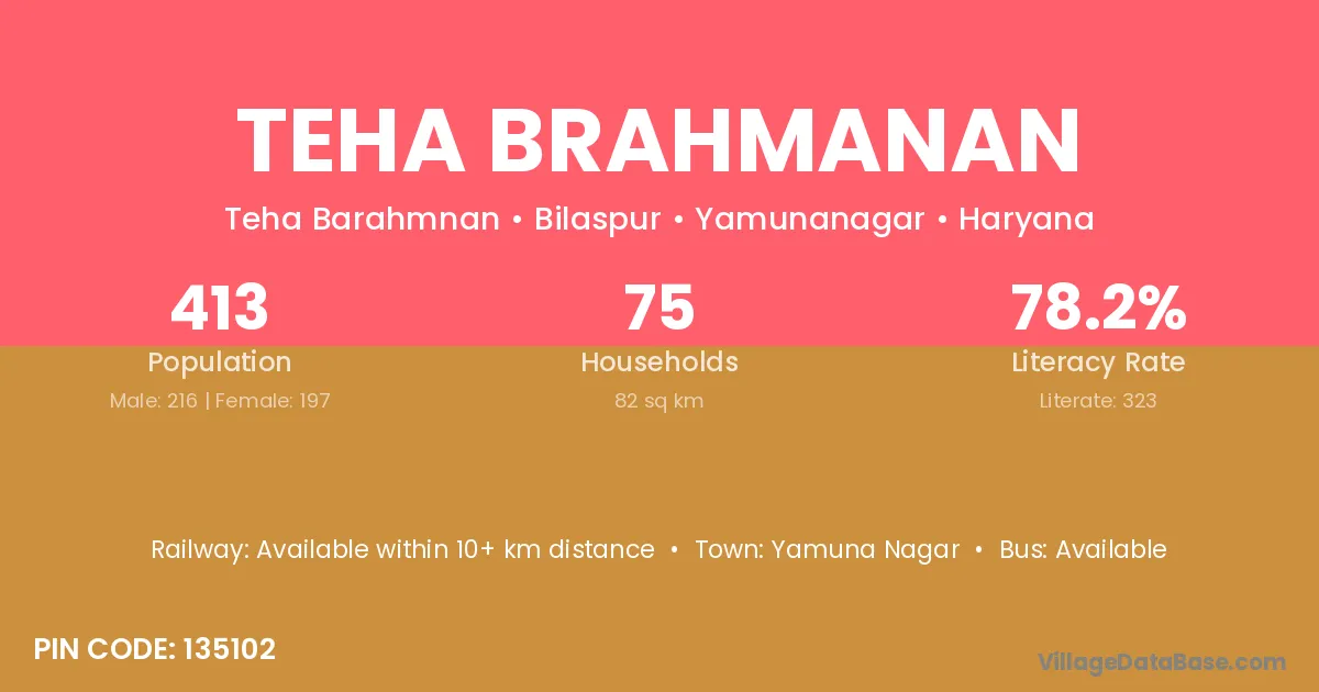 Teha Brahmanan village has a total population of 413 people, of which 216 are males and 197 are females.