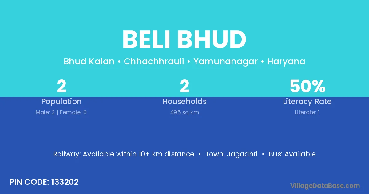Jagadhri is the nearest town to Beli Bhud village for major economic activities