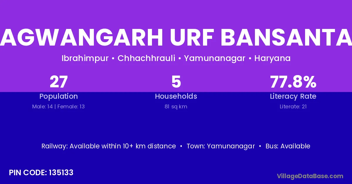 Yamunanagar is the nearest town to Bhagwangarh Urf Bansantaur village for major economic activities