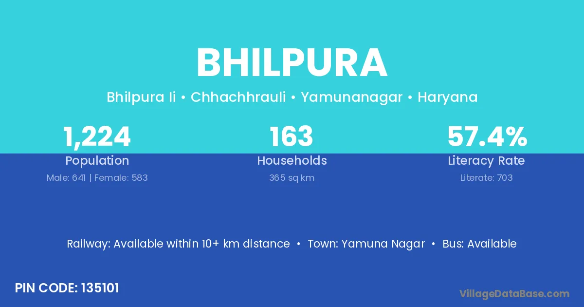 Yamuna Nagar is the nearest town to Bhilpura village for major economic activities