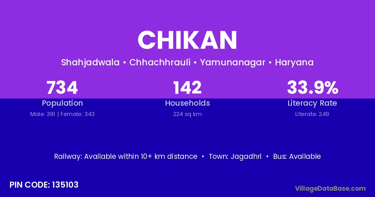 Jagadhri is the nearest town to Chikan village for major economic activities