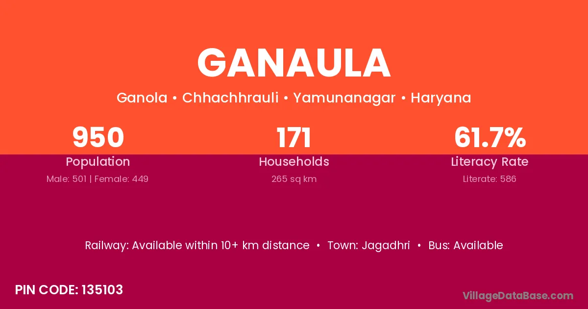 Jagadhri is the nearest town to Ganaula village for major economic activities