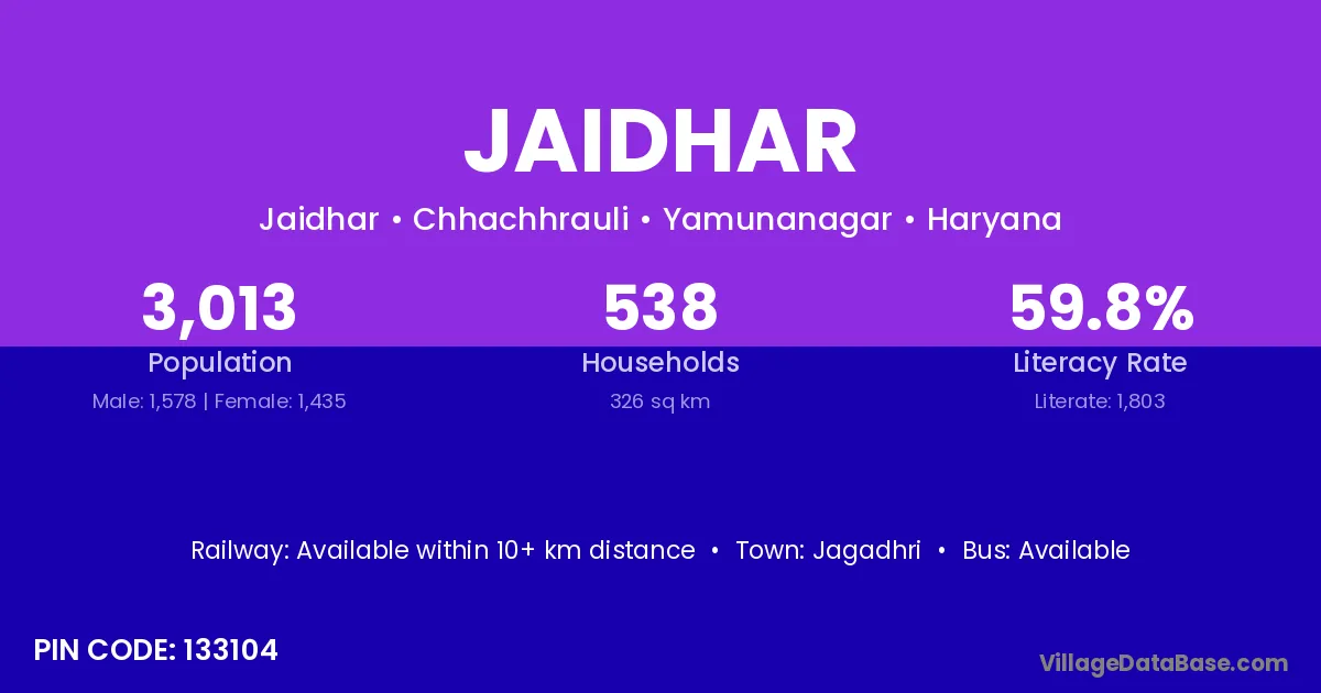 Jagadhri is the nearest town to Jaidhar village for major economic activities