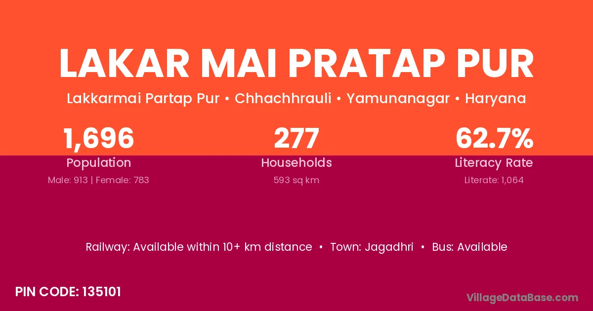 Jagadhri is the nearest town to Lakar Mai Pratap Pur village for major economic activities