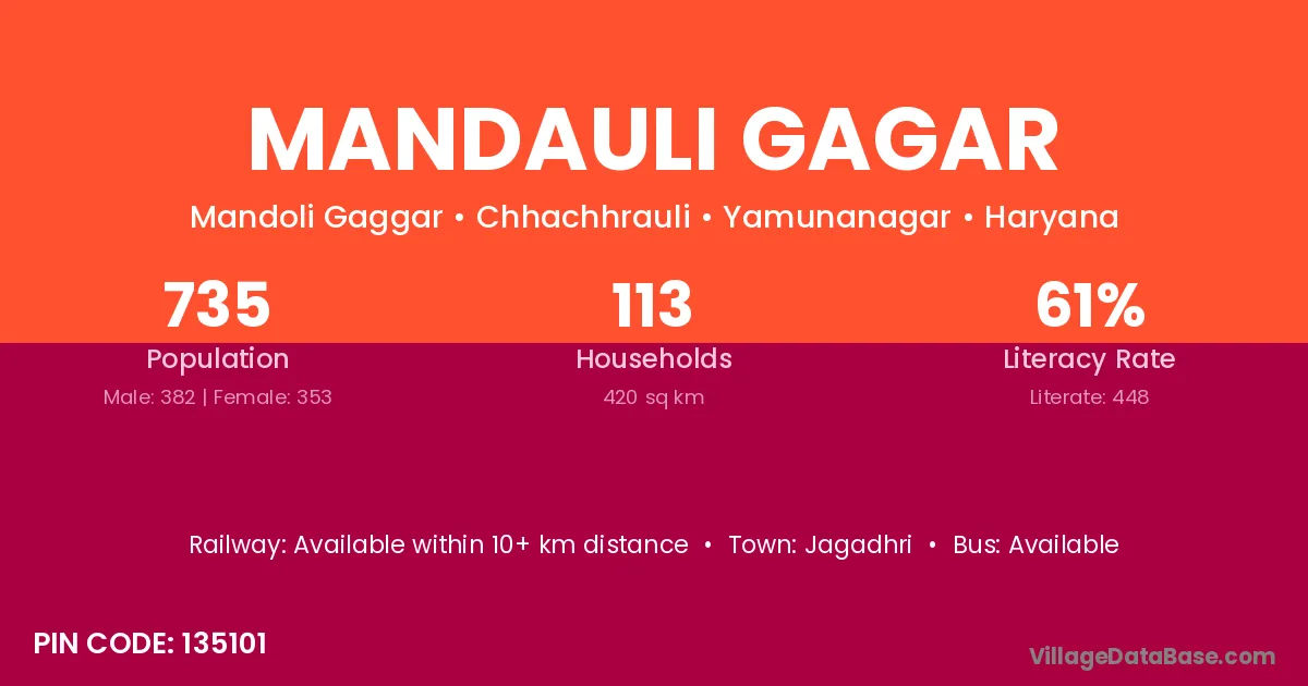 Jagadhri is the nearest town to Mandauli Gagar village for major economic activities