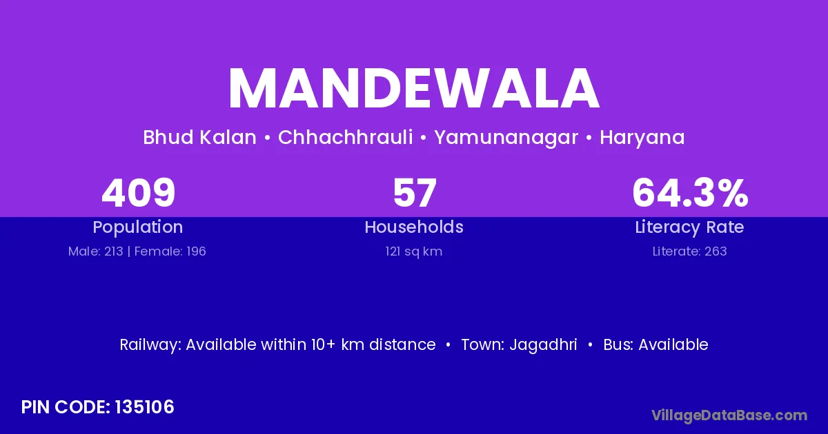 Jagadhri is the nearest town to Mandewala village for major economic activities