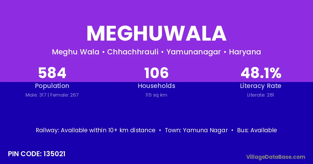 Yamuna Nagar is the nearest town to Meghuwala village for major economic activities