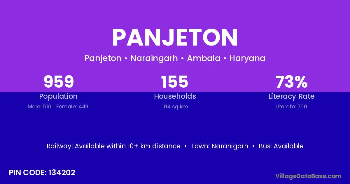 Jagadhri is the nearest town to Panjeton village for major economic activities