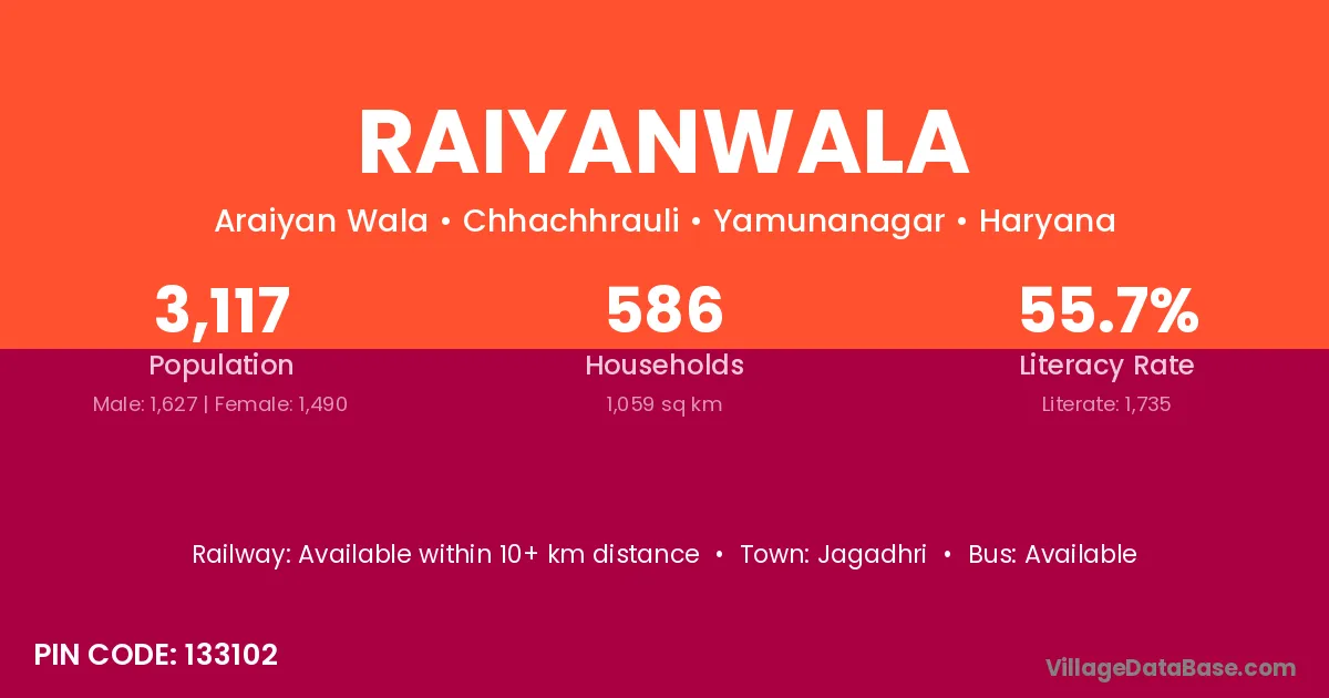 Jagadhri is the nearest town to Raiyanwala village for major economic activities
