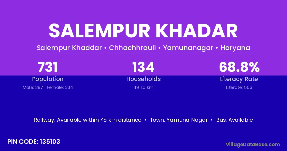 Yamuna Nagar is the nearest town to Salempur Khadar village for major economic activities