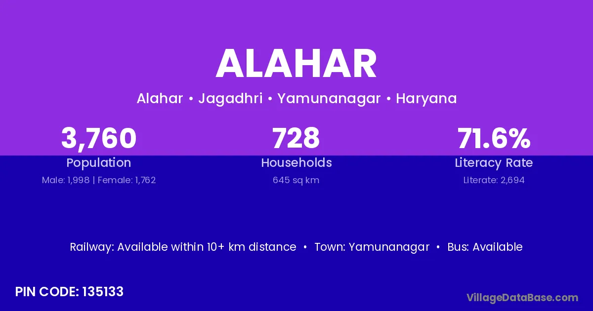 Yamunanagar is the nearest town to Alahar village for major economic activities