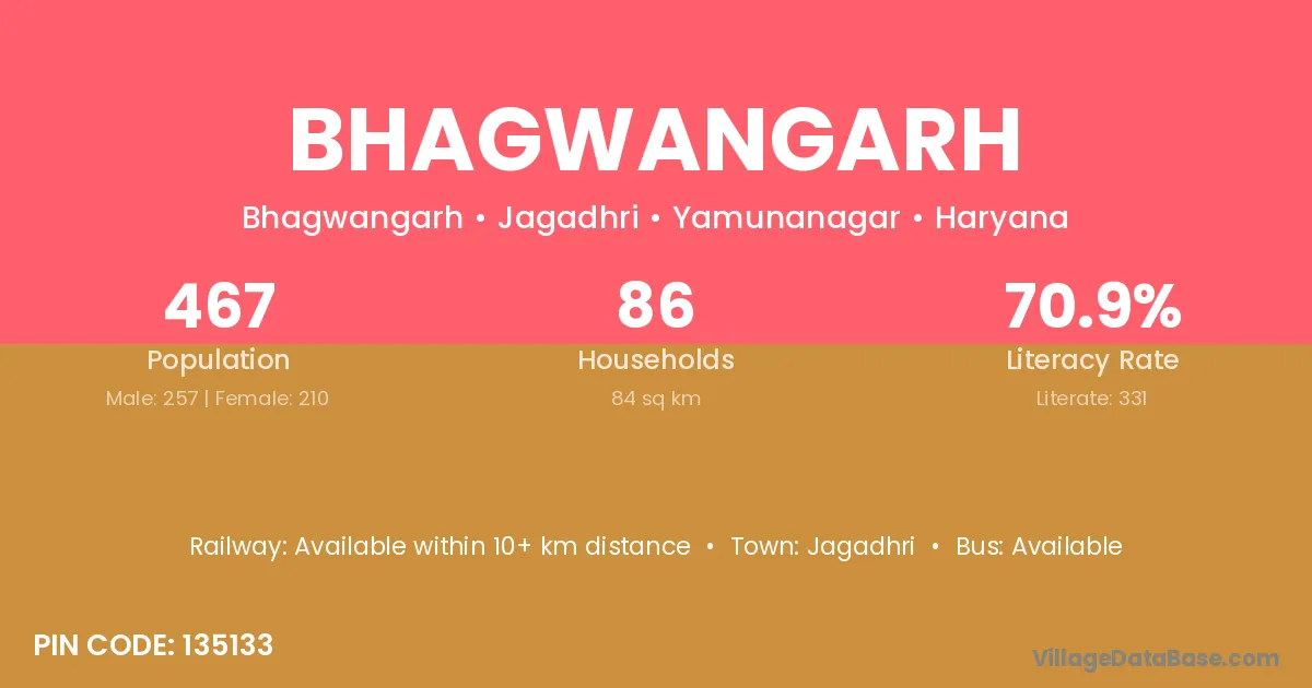 Jagadhri is the nearest town to Bhagwangarh village for major economic activities