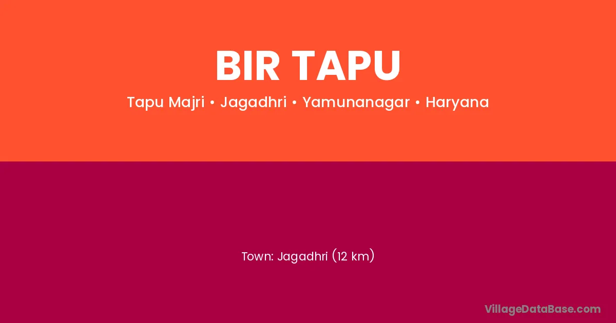 Jagadhri (12 km) is the nearest town to Bir Tapu village for major economic activities and is located approximately 12 km away.