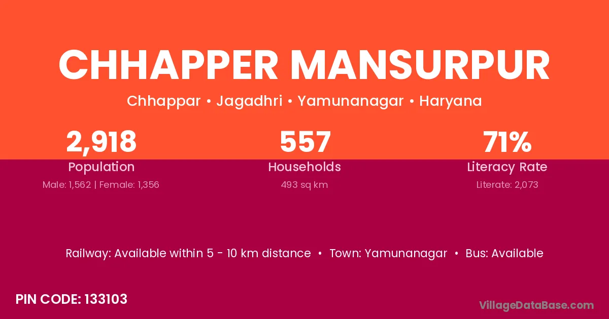 Yamunanagar is the nearest town to Chhapper Mansurpur village for major economic activities