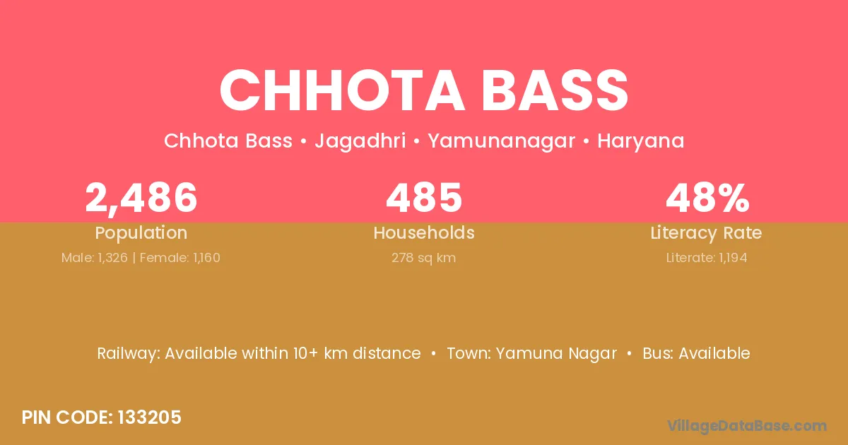 Yamuna Nagar is the nearest town to Chhota Bass village for major economic activities