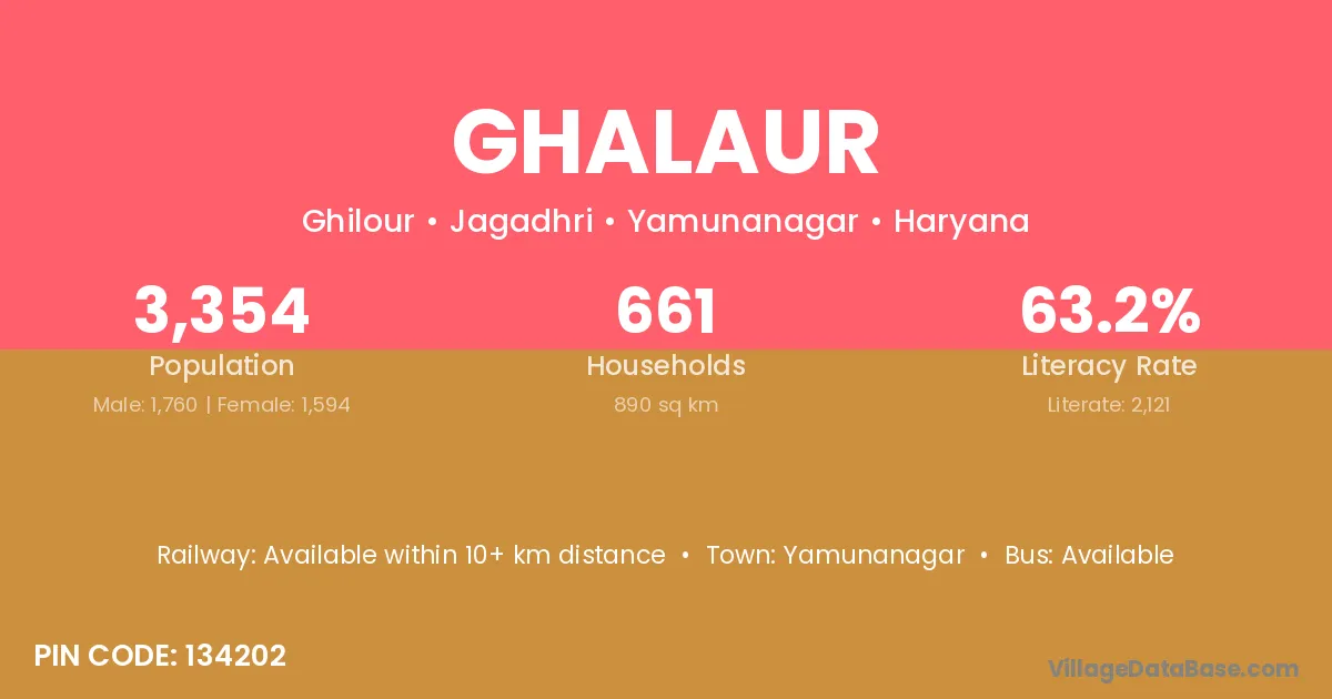 Ghalaur village has a total population of 3,354 people, of which 1,760 are males and 1,594 are females.