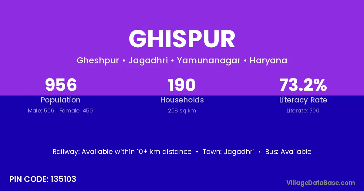 Jagadhri is the nearest town to Ghispur village for major economic activities
