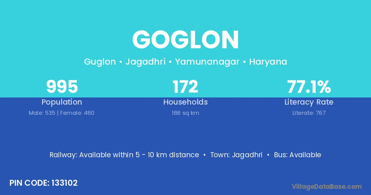 Jagadhri is the nearest town to Goglon village for major economic activities