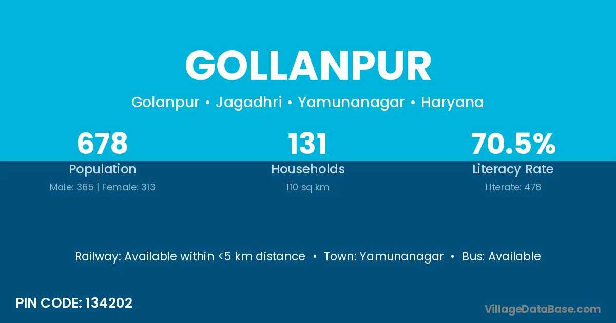 Yamunanagar is the nearest town to Gollanpur village for major economic activities
