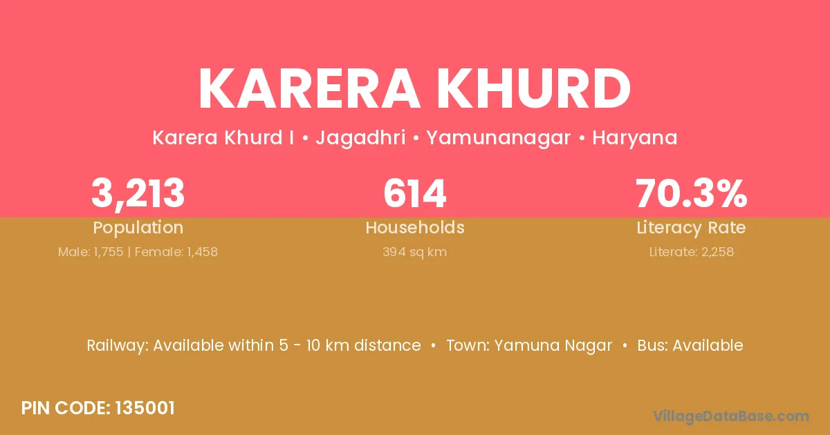 Yamuna Nagar is the nearest town to Karera Khurd village for major economic activities