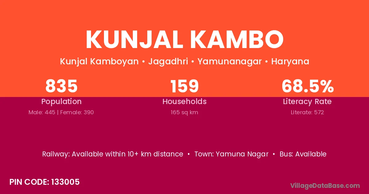 Yamuna Nagar is the nearest town to Kunjal Kambo village for major economic activities
