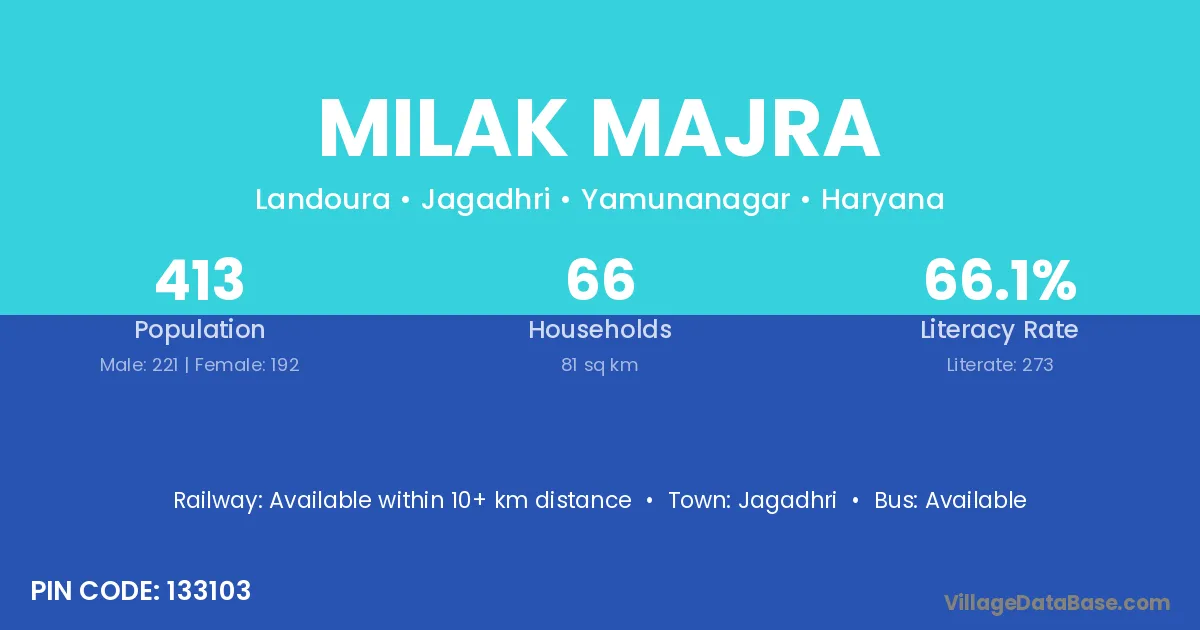 Jagadhri is the nearest town to Milak Majra village for major economic activities