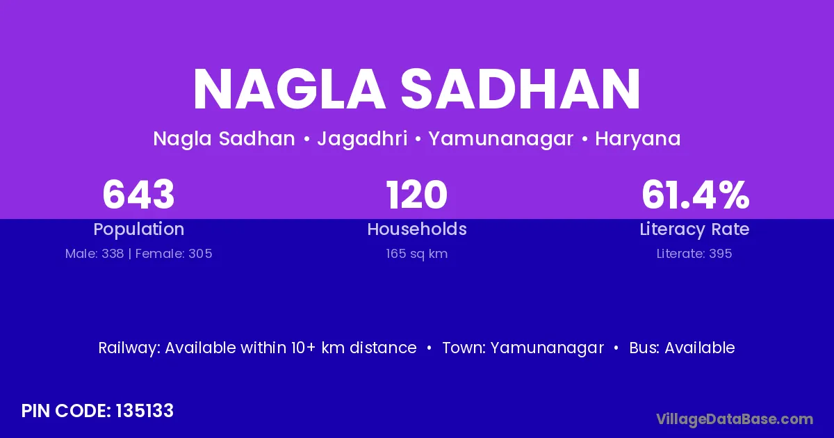 Yamunanagar is the nearest town to Nagla Sadhan village for major economic activities