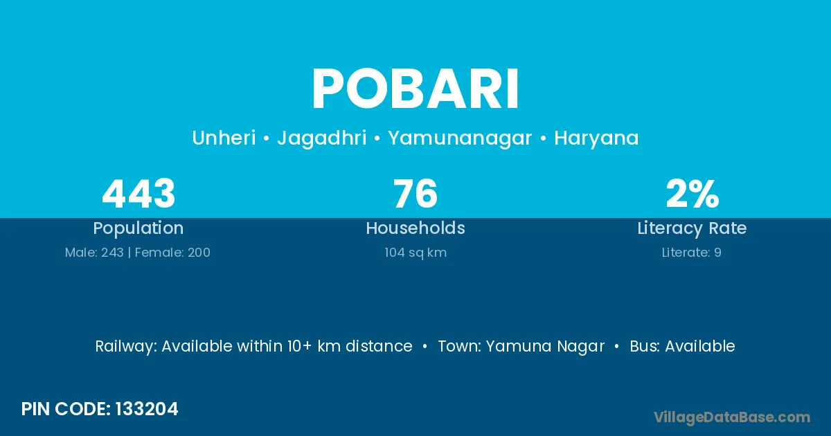 Yamuna Nagar is the nearest town to Pobari village for major economic activities