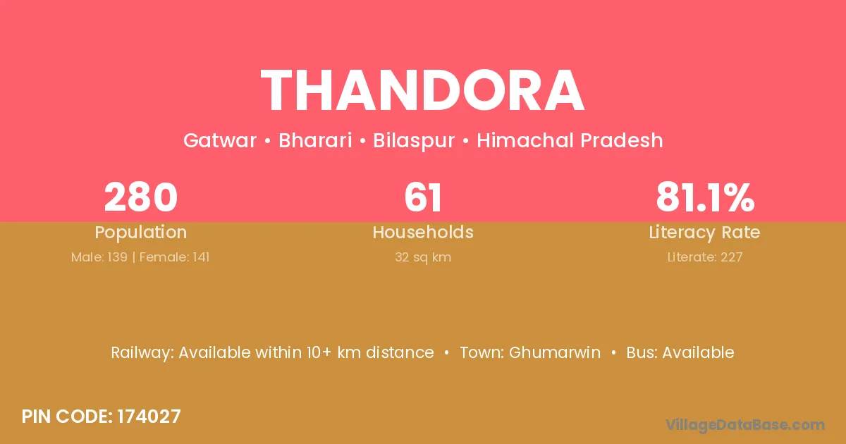 According to Census 2011 information, the village code of Thandora village is 174027.
