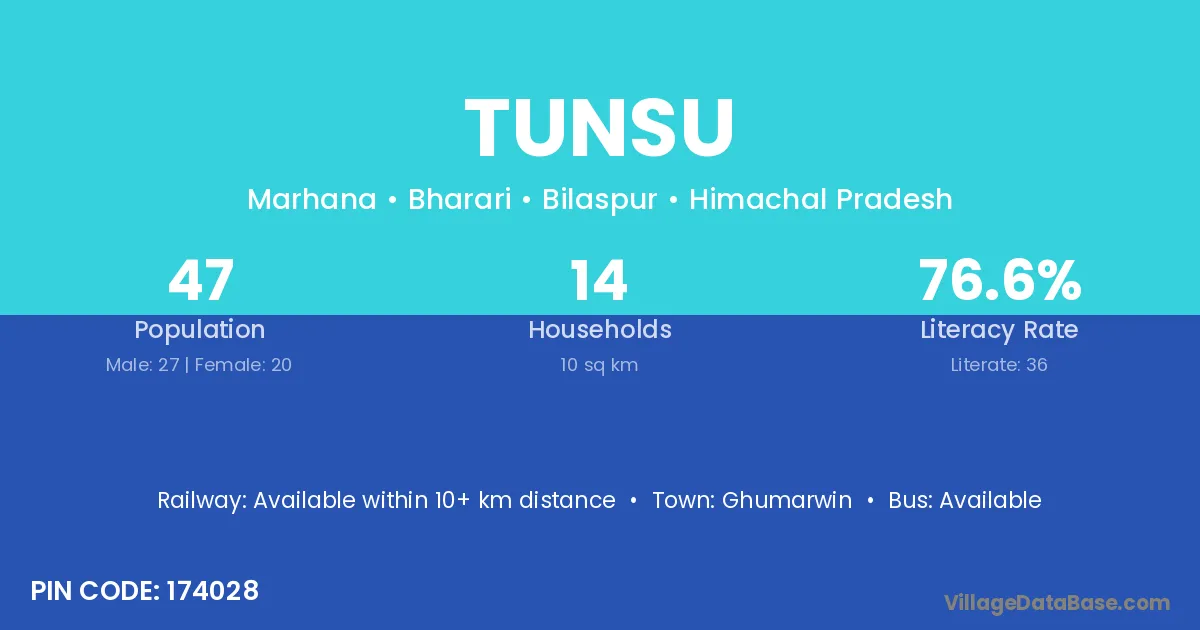 Tunsu village is located in the Bharari Tehsil of the Bilaspur district in Himachal Pradesh .