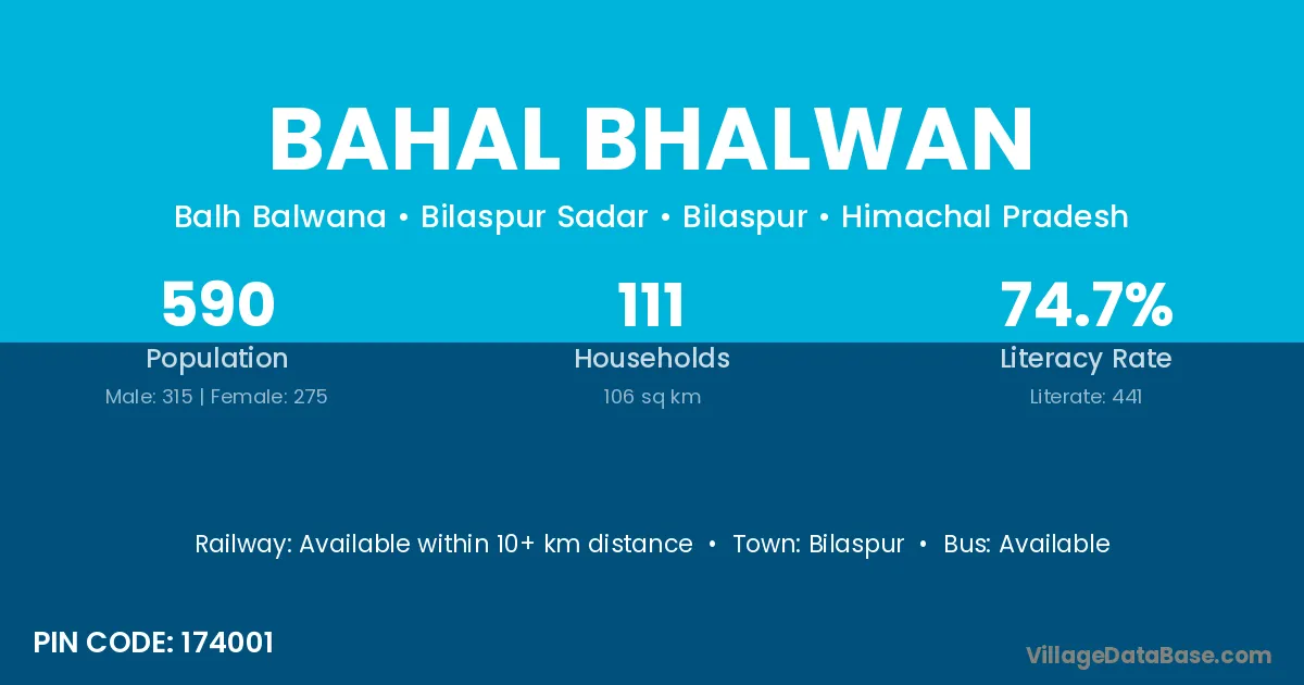 Bahal Bhalwan village has a total population of 590 people, of which 315 are males and 275 are females.