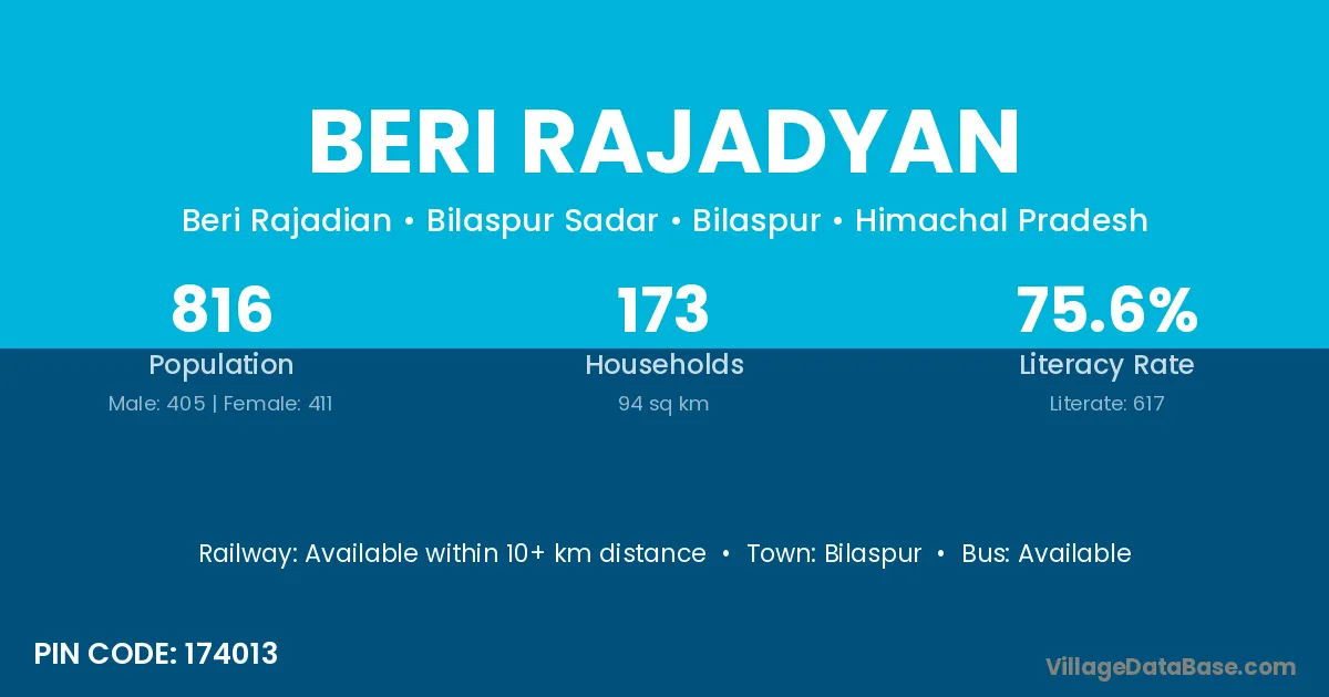 Beri Rajadyan village is located in the Bilaspur Sadar Tehsil of the Bilaspur district in Himachal Pradesh .