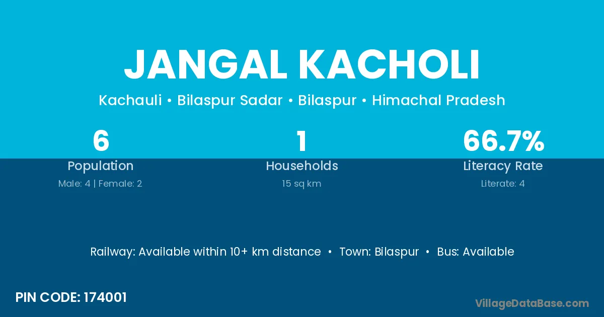 Jangal Kacholi village has a total population of 6 people, of which 4 are males and 2 are females.