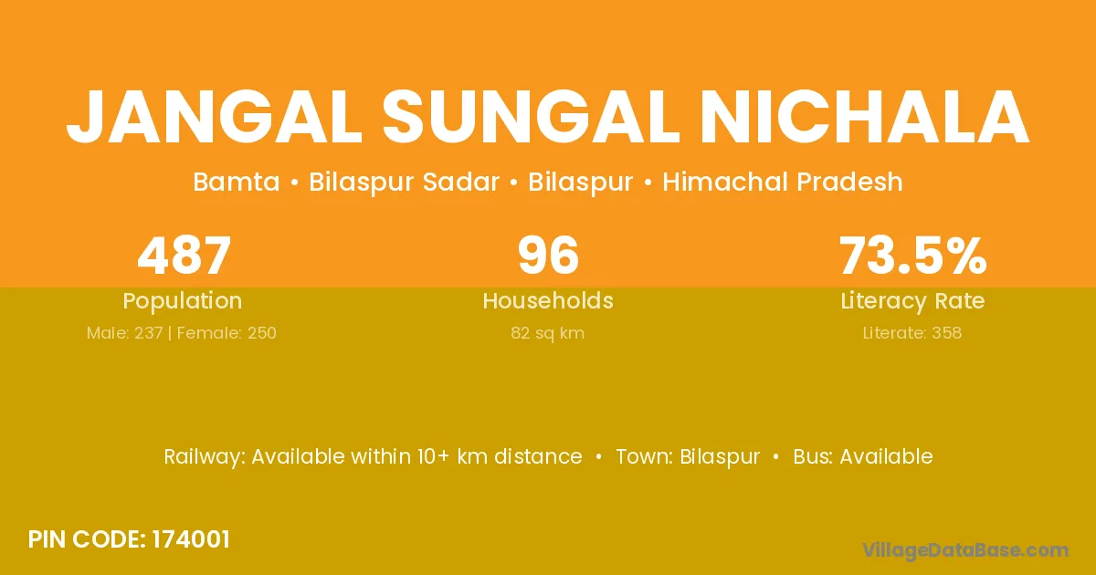 Jangal Sungal Nichala village has a total population of 487 people, of which 237 are males and 250 are females.