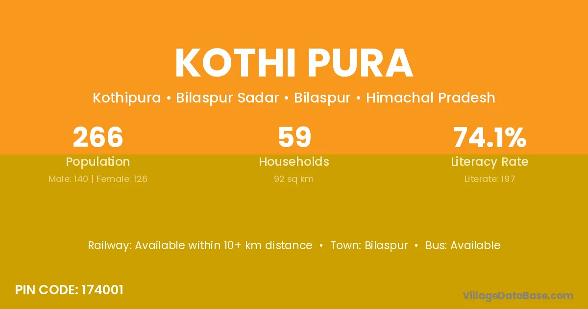 According to Census 2011 information, the village code of Kothi Pura village is 174001.