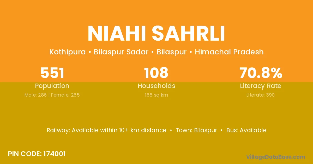 Bilaspur is the nearest town to Niahi Sahrli village for major economic activities