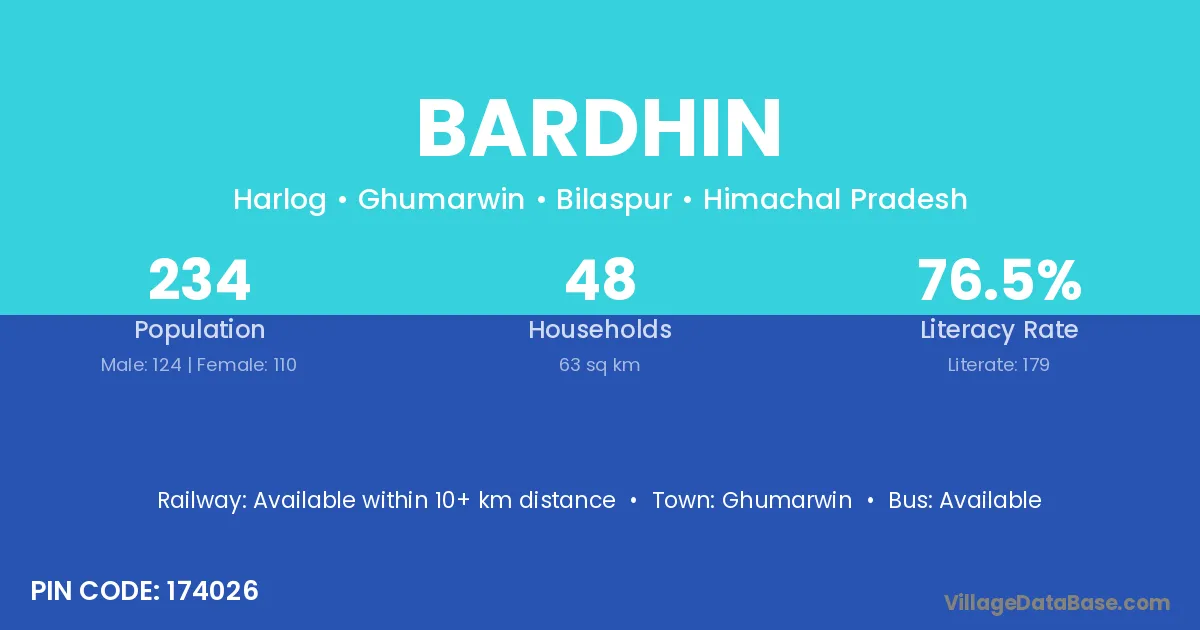 According to Census 2011 information, the village code of Bardhin village is 174026.