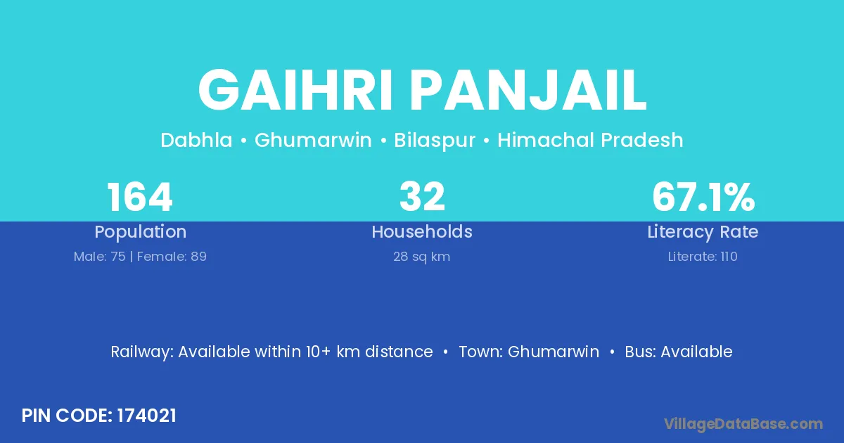 Gaihri Panjail village has a total population of 164 people, of which 75 are males and 89 are females.
