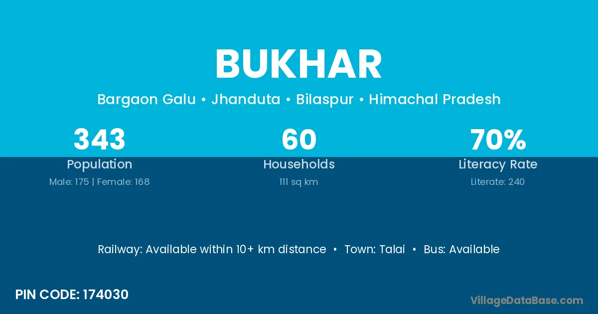 According to Census 2011 information, the village code of Bukhar village is 174030.