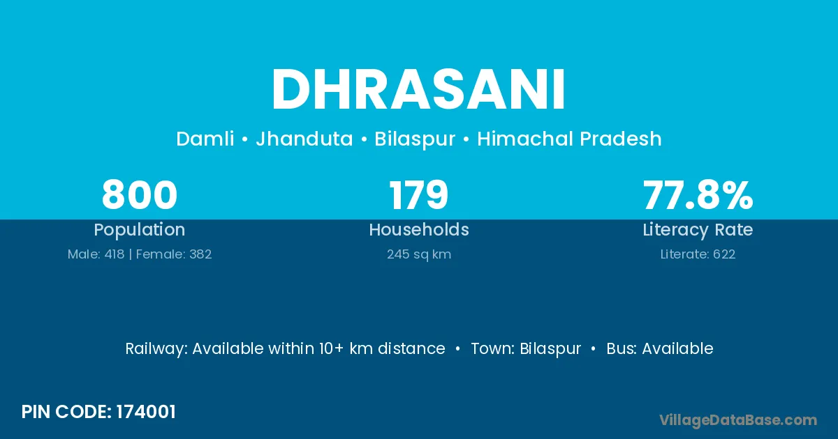 Dhrasani village has a total population of 800 people, of which 418 are males and 382 are females.