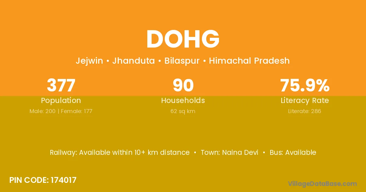 Dohg village has a total population of 377 people, of which 200 are males and 177 are females.