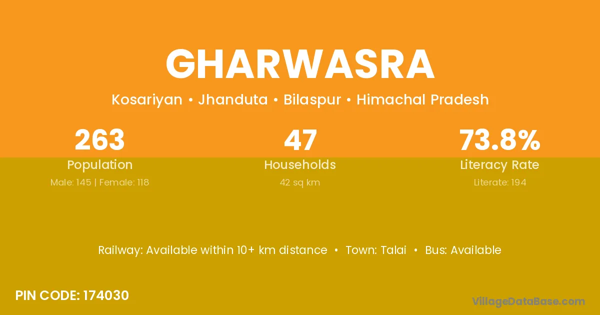 According to Census 2011 information, the village code of Gharwasra village is 174030.